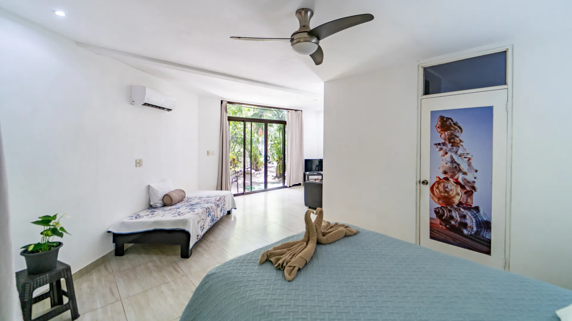 • Queen bed and single bed
